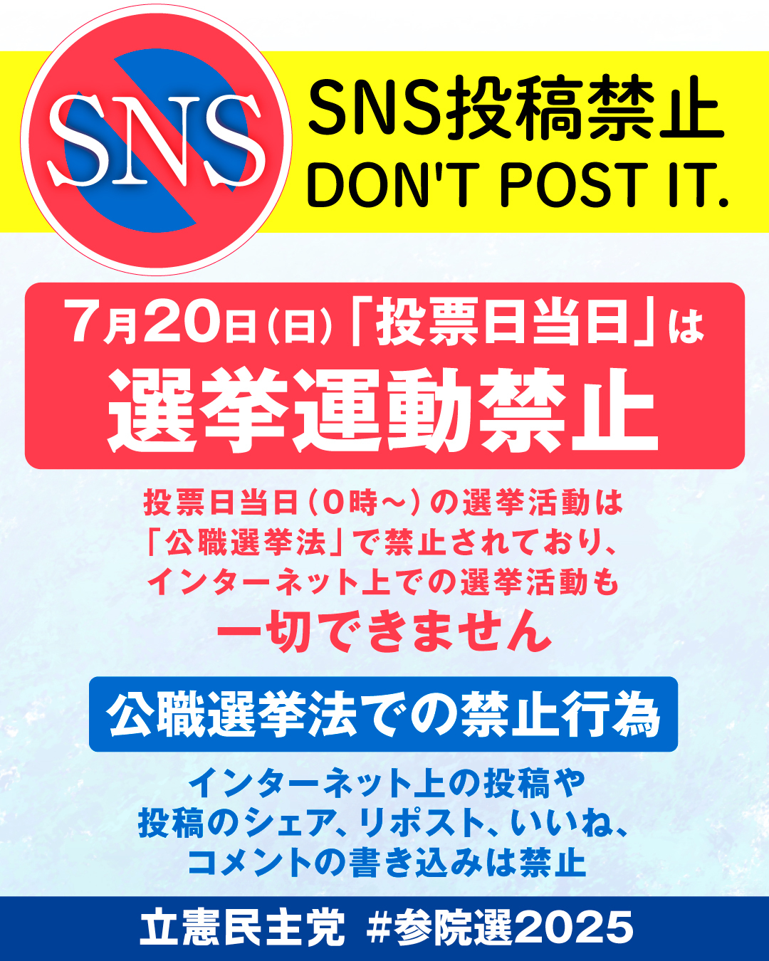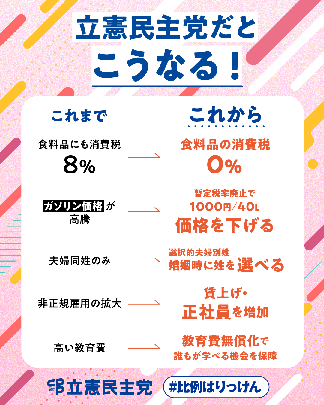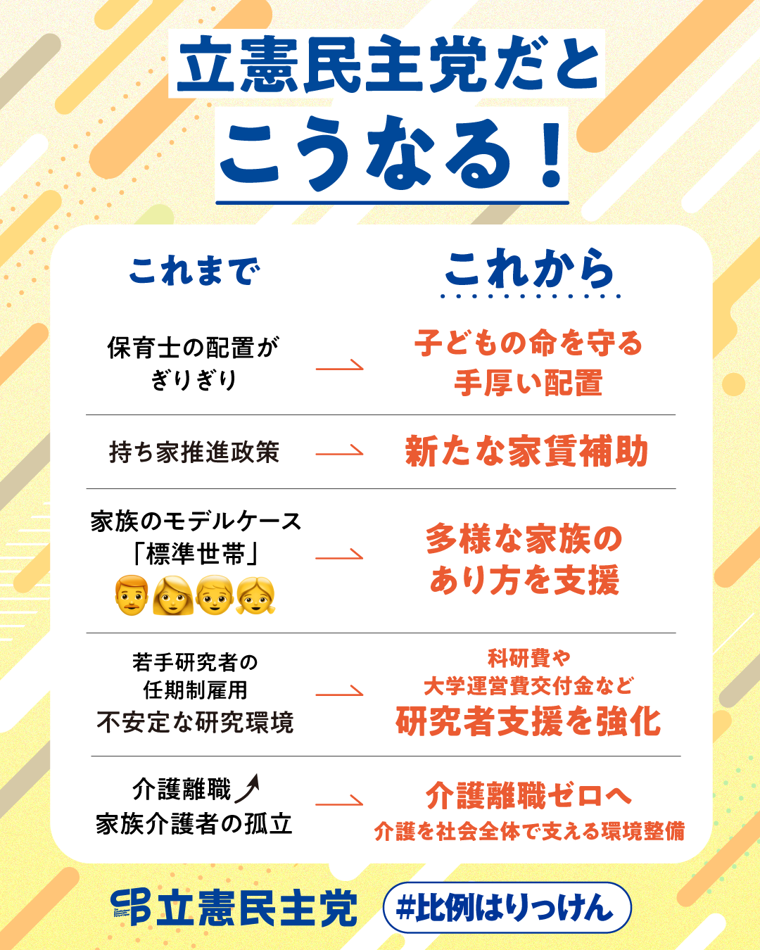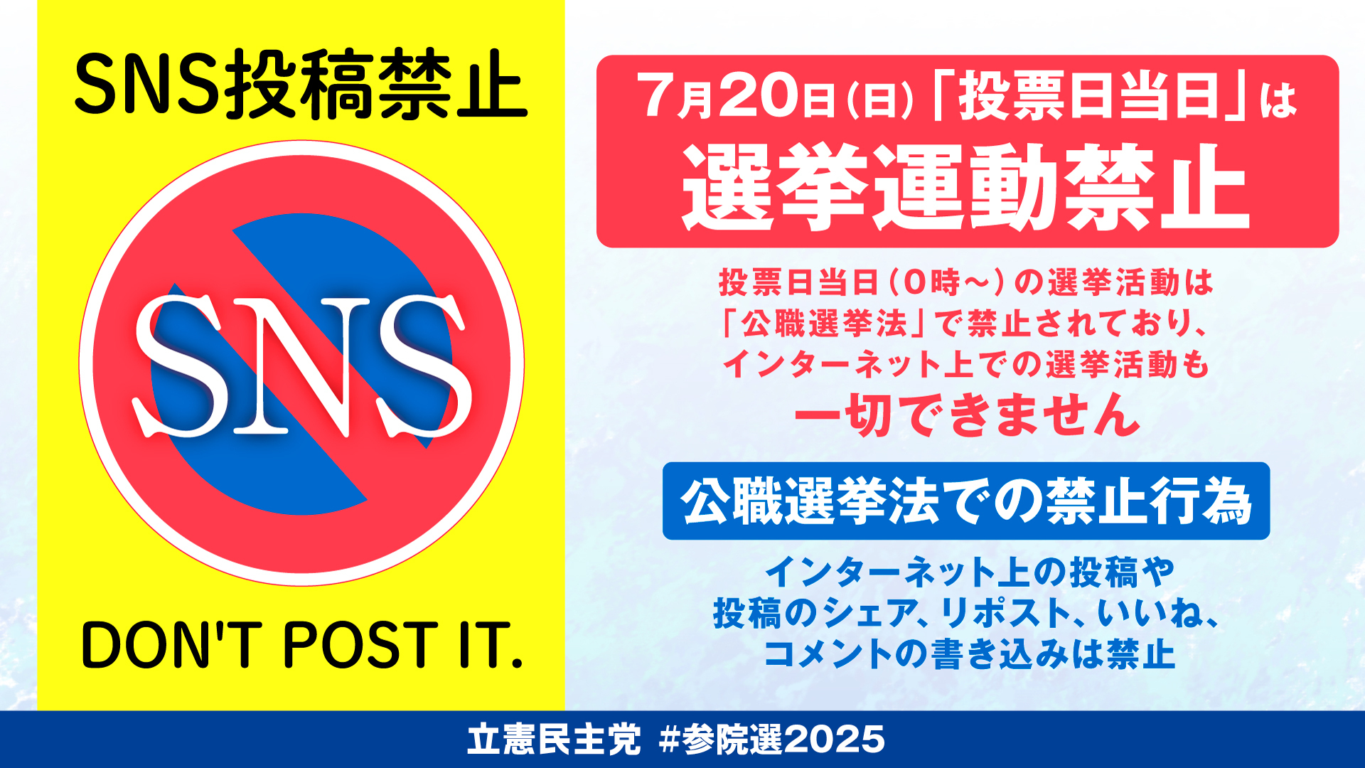 SNSを通して、ひとりでも多くの人に立憲民主党の候補者や活動を知ってもらうために、気になるコンテンツを拡散しよう。 なぜ立憲民主党を応援するのか、あなたの気持ちも添えて送ると思いが伝わります。