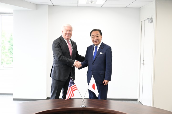 On the 12th, President Yoshihiko Noda received a courtesy call from U.S. Ambassador to Japan George Glass for his inaugural address. From the Constitutional Democratic Party of Japan, the following attended: Katsuya Okada, Permanent Advisor; Hiroyuki Oogushi, Acting President; Junya Ogawa, Secretary-General; Kazuhiko Shigeto, Chairman of the Policy Research Committee; Atsushi Oshima, Chairperson, Business & Organizations Liaison Committee; Tetsuro Fukuyama, Next Minister of Security; and Kentaro Genma, Director of the International Department.