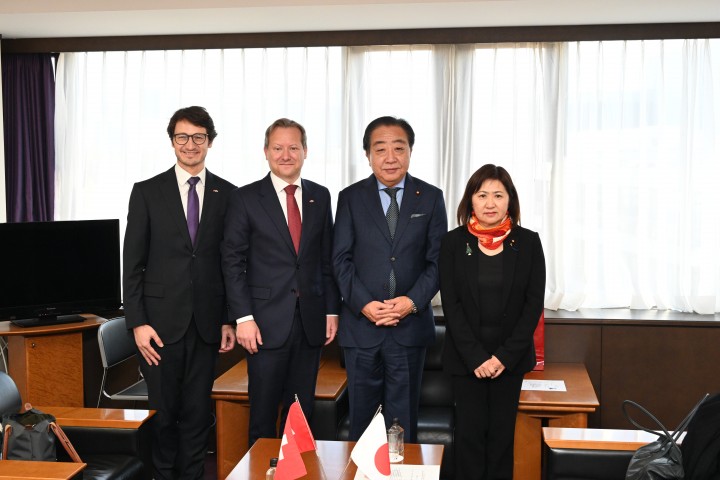 On December 9, Mr. Yoshihiko Noda, President of the Constitutional Democratic Party of Japan, received a courtesy call from Mr. Roger Dubach, Ambassador of Switzerland to Japan, at CDP Headquarters.