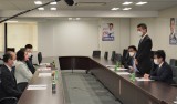 会見には県連代表の小田村克彦県議、県連幹事長の酒本哲也県議、党本部から大串博志選対委員長が出席しました。