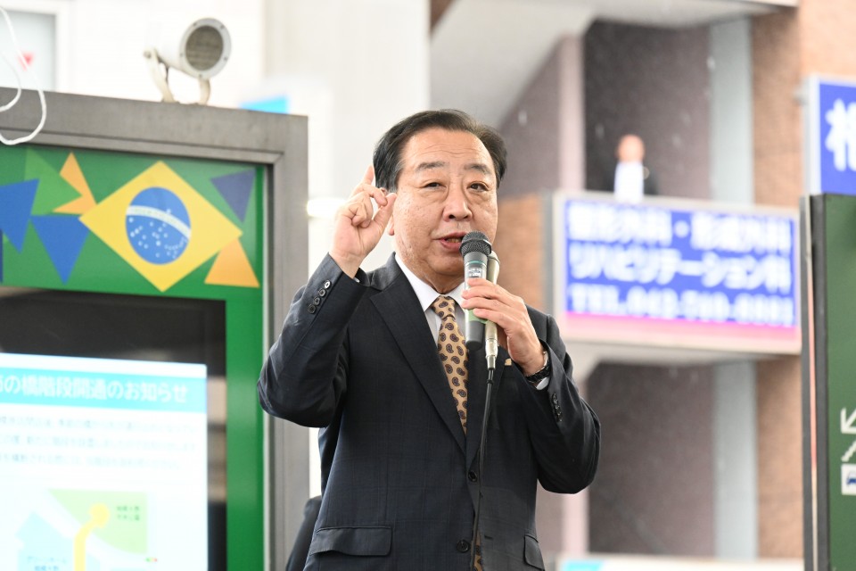 立憲民主党は4月13日、相模大野駅前で街頭演説会を開催。野田佳彦代表や水野もとこ、牧山ひろえ両参院議員、大塚さゆり、宗野創両衆院議員が参加しました。当日は天候に恵まれない中、多くの人に足を止めていただきました。