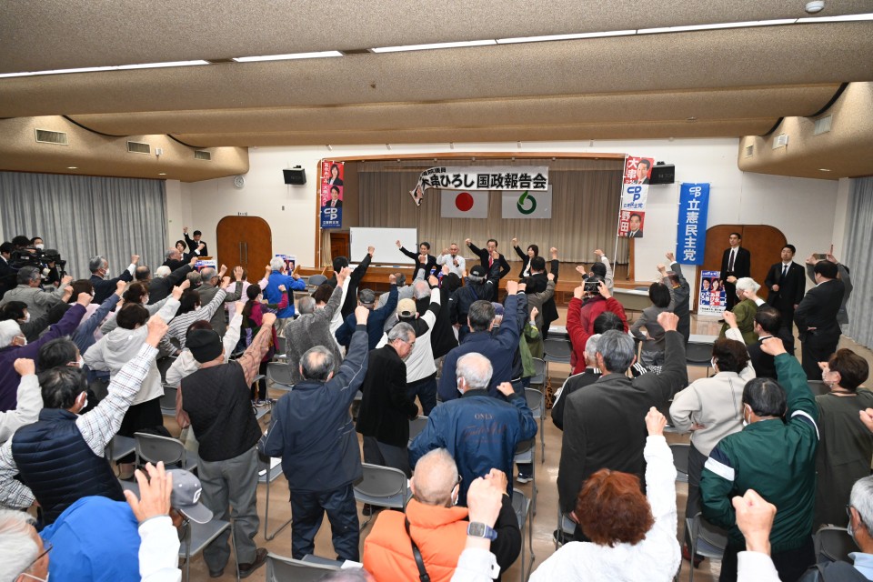 野田代表は、「昨年の衆院選で少数与党政権に追い込むことができた。風景が変わった。それで今年度予算が29年ぶりに修正された。外国では、政府予算がそのまま通過することは少ない。与野党で議論して、より改善されたものに修正されるのはあたりまえのこと。今国政は停滞しているのではなく、民主主義が進化していることだ」と、皆さんのおかげで、日本でもようやく実現できるようになってきたと話しました。