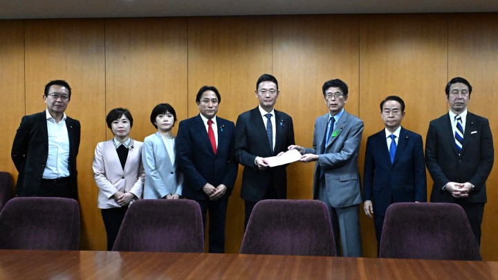 要請に対し、中田宏副大臣からは「いただいた要請をしっかり大臣に報告したい。関係団体から意見を伺いながら調査の準備をしていきたい」との発言がありました。