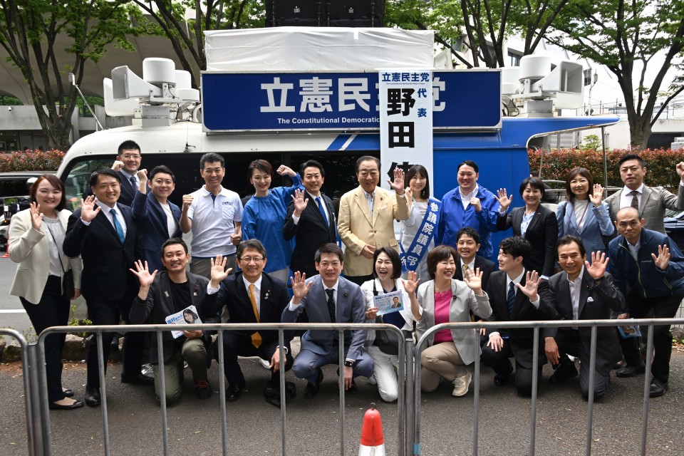 街頭演説には、野田代表、泉健太常任顧問、塩村あやか参院議員、髙松智之、松尾明弘、柴田勝之、落合貴之、吉田はるみ、阿部祐美子、阿久津幸彦各衆院議員はじめ、多くの自治体議員も参加しました。