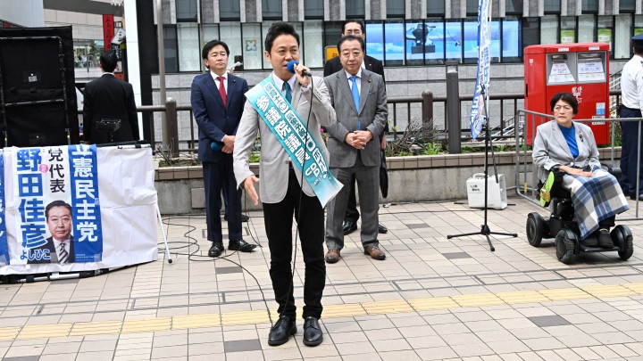 野田代表は、「都議会は、都民ファースト、自民、公明が圧倒的多数の与党で緊張感がない。立憲民主党議員が質問をしても小池都知事は黙殺、シカトだ」と都議会の構成が偏っているため、健全な議論ができていないことを訴え、「都民に選ばれた議員の意見をトップが聞かないのはおかしい」と述べました。また、国政については、選択的夫婦別姓の実現、介護・障害者福祉従事者の待遇改善の議員立法成立等を訴えました。
