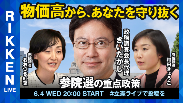 リニューアルした立憲ライブの第28回目。「物価高から、あなたを守り抜く 参院選の重点政策」と題して、城井崇衆院議員を迎え、お話します。ぜひ、ご覧ください。