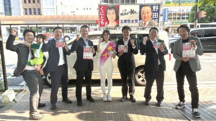 くにともさんは、人口の半分が女性であるにもかかわらず、国会の衆参両院に占める女性議員の比率が19%となっている現状を指摘した上で、「エッセンシャルワーカーと呼ばれる職業には多くの女性が就いている。そういった方々の処遇改善を含め、声を届けていくのも女性の力だと思う」と述べ、「女性が政治に参画すれば、(エッセンシャルワーカーの処遇改善などが)必ずこの国の優先政策に変わる。生活を支える政治へとこの国を変えていきたい」と力を込めました。