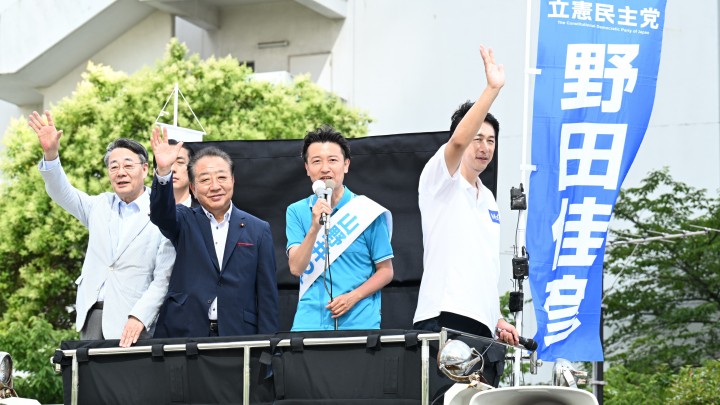 野田代表は、(1)自民党の裏金問題(2)物価高対策としての減税・暫定税率廃止(3)プロジェクションマッピングに16億円、巨大噴水に26億円の無駄遣い――等を取り上げました。都議会自民党の裏金問題について、この問題により公認されなかった候補者のところに自民党の都連会長が初日の応援に入ったことを問題視。「この1点をもって反省の姿勢が全く見えない。これは国政でも都政でも同じ構造だ」と厳しく批判しました。「税金は皆さんから託されたお金。それを報告もせず脱税のようなことをする人たちがたくさんいる自民党を認めるのか。今回も、『裏金政治はNO』だと意思表示をするために山野井さんご支援をいただきたい」と呼びかけました。