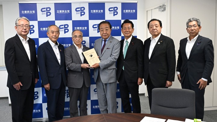 野田佳彦代表は7月23日、党本部で会津若松市、喜多方市等の福島県会津地方の17市町村で構成される会津総合開発協議会より「会津を拓く重点要望事項」を受け取りました。福島3区選出の小熊慎司衆院議員も参加しました。