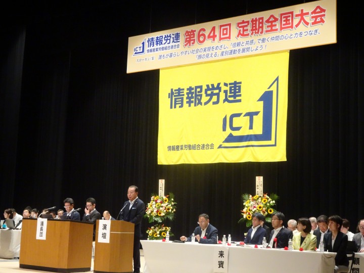 情報通信および関連産業で働く方々で構成される情報産業労働組合連合会(情報労連)第64回定期全国大会が7月31日、都内で開催され、野田佳彦代表が連帯のあいさつを行いました。