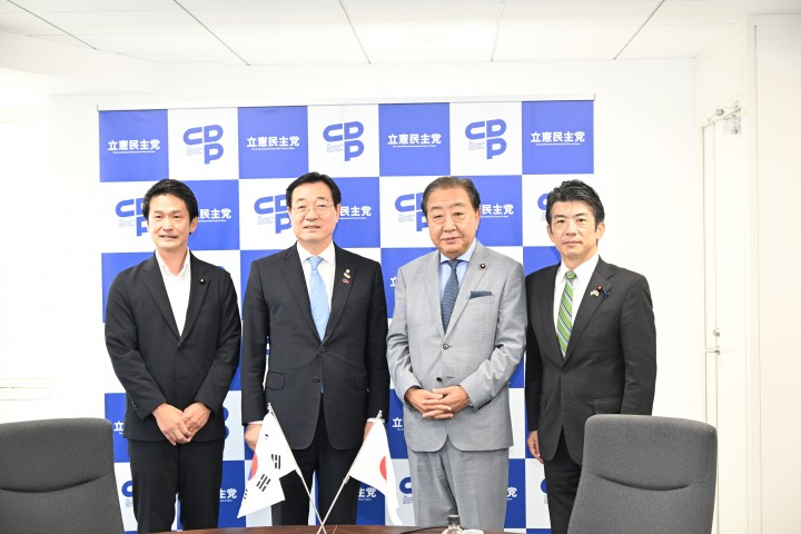 野田佳彦代表、小川淳也幹事長、重徳和彦政務調査会長は8月21日、韓国から訪日した閔洪喆(ミン・ホンチョル)韓日議員連盟副会長兼幹事長の表敬訪問を党本部で受けました。