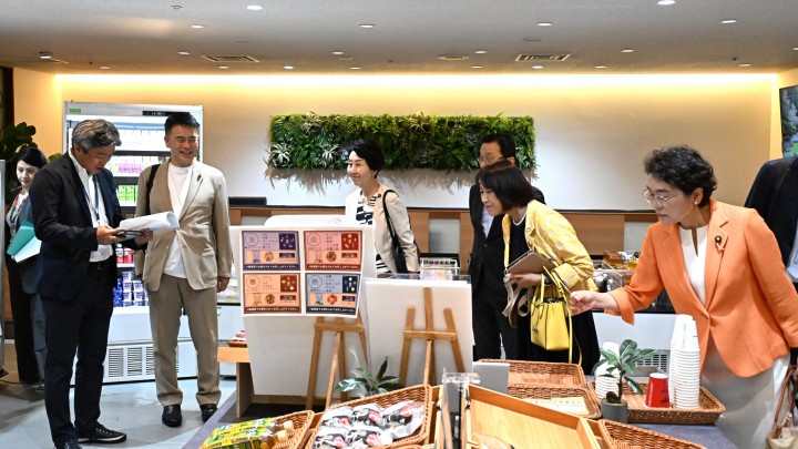 立憲民主党の子ども・若者応援本部(本部長:大西健介衆院議員)は9月12日、東京都港区の伊藤忠商事株式会社(以下、伊藤忠商事)と千代田区のNPO法人 自殺対策支援センター ライフリンク(以下、ライフリンク)をそれぞれ訪問し、取り組みについての視察と意見交換を行いました。視察には、子ども・若者応援本部の役員から岡本あき子、早稲田ゆき両衆院議員、高木真理参院議員も参加しました(写真上は、伊藤忠商事「朝型勤務」の社員のための軽食会場)。