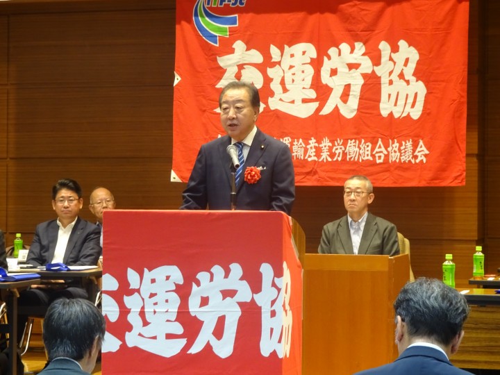 10月9日、交通運輸・観光サービス産業労働者で組織される全日本交通運輸産業労働組合協議会(交運労協)の第41回定期総会が都内で開催され、野田佳彦代表、近藤昭一衆院議員が連帯の挨拶を行いました。