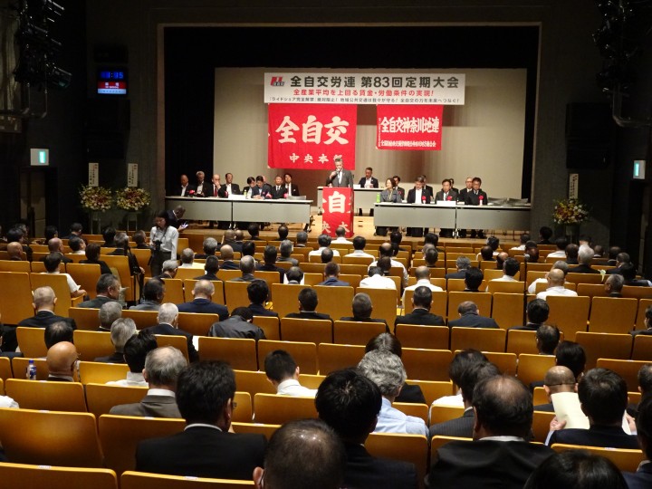 ハイヤー、タクシー、観光バス、自動車教習所で働く労働者で構成される労働組合、「全国自動車交通労働組合連合会(全自交労連)」の(公印省略) 第83回定期大会が10月20日、横浜市内で開催されました