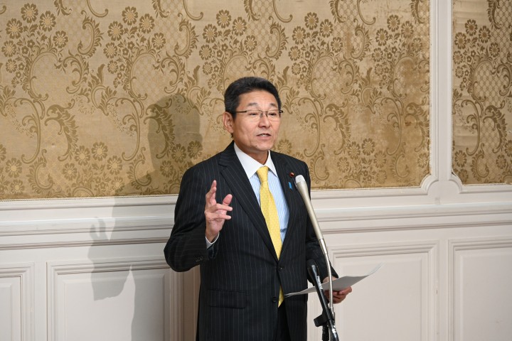 笠浩史国会対策委員長は10月22日、自民党とガソリンの暫定税率廃止についての協議後、国会内で記者団の質問に答えました。