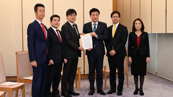 申入れには城井崇政務調査会長代行、徳永エリ政務調査会長代理、山岡達丸政務調査会長代理、井坂信彦政務調査会長代理が同行しました。